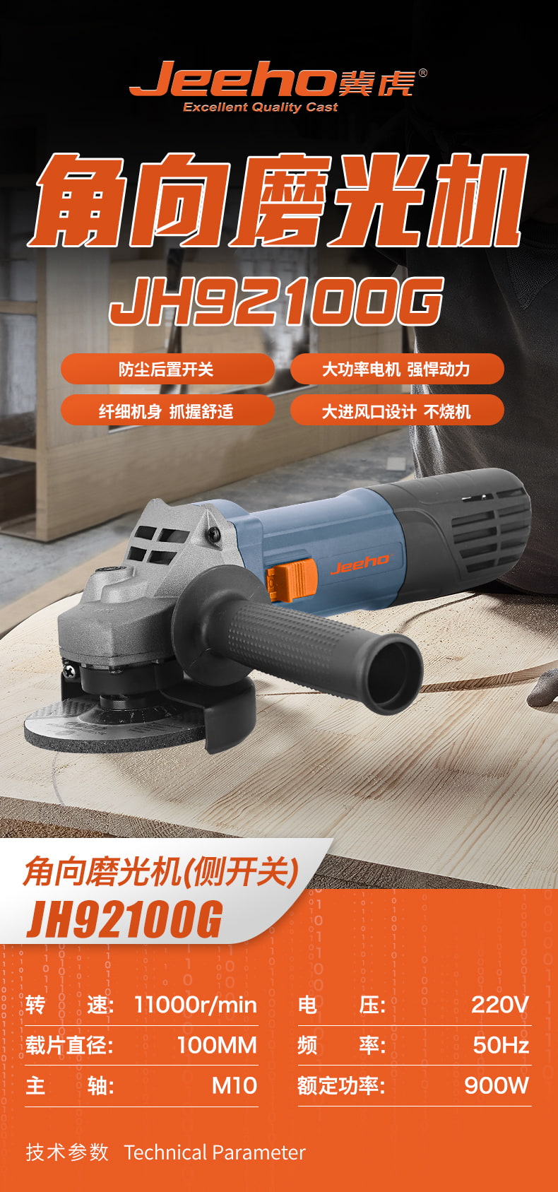 商品名称:冀虎 JH92100G 角向磨光机(侧开关)