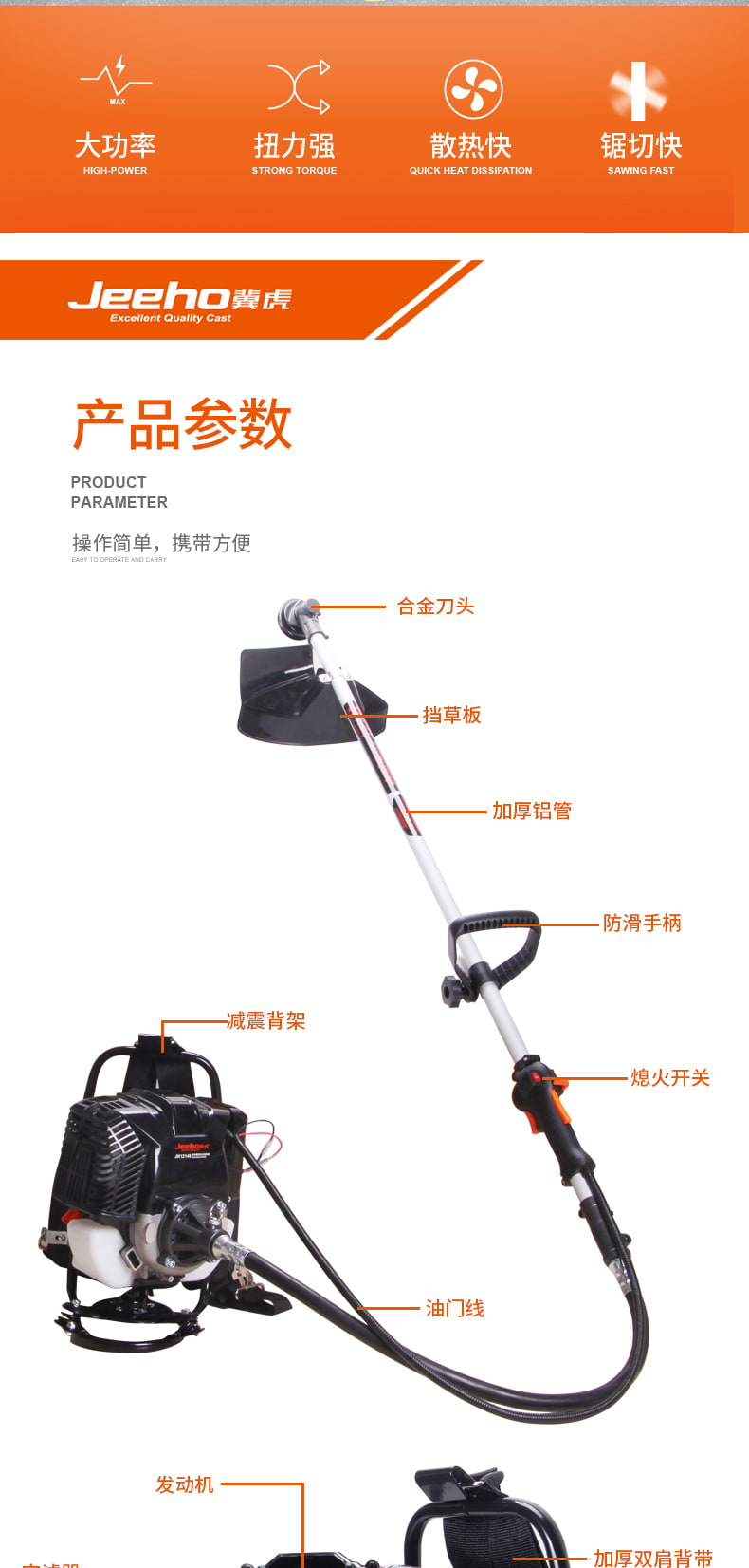 商品名称:冀虎JH12145 背负式割草机(四冲程)