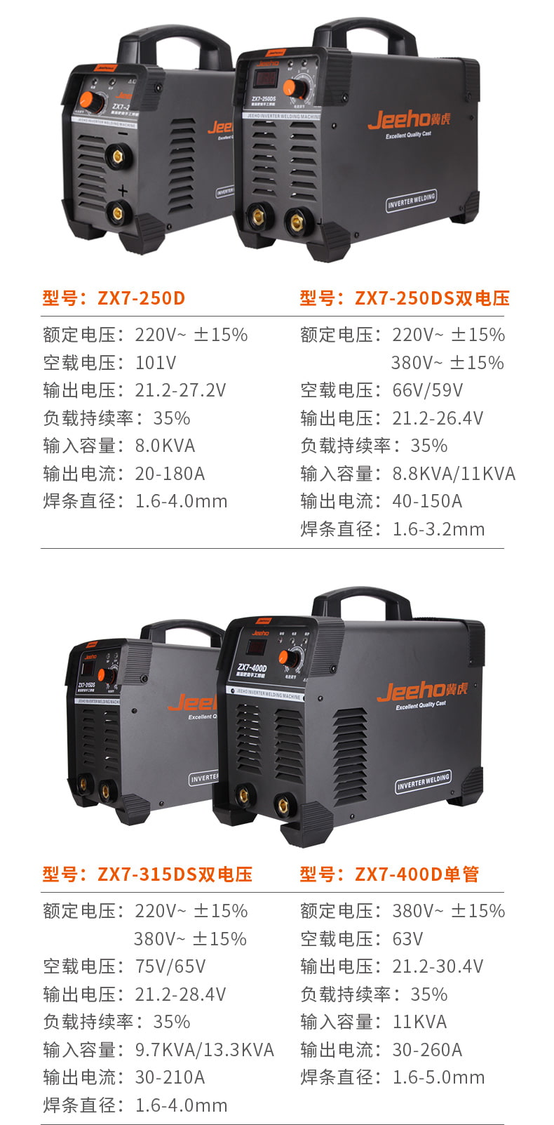 商品名称:冀虎 NB/ZX7-250 智能四用无气自保焊机