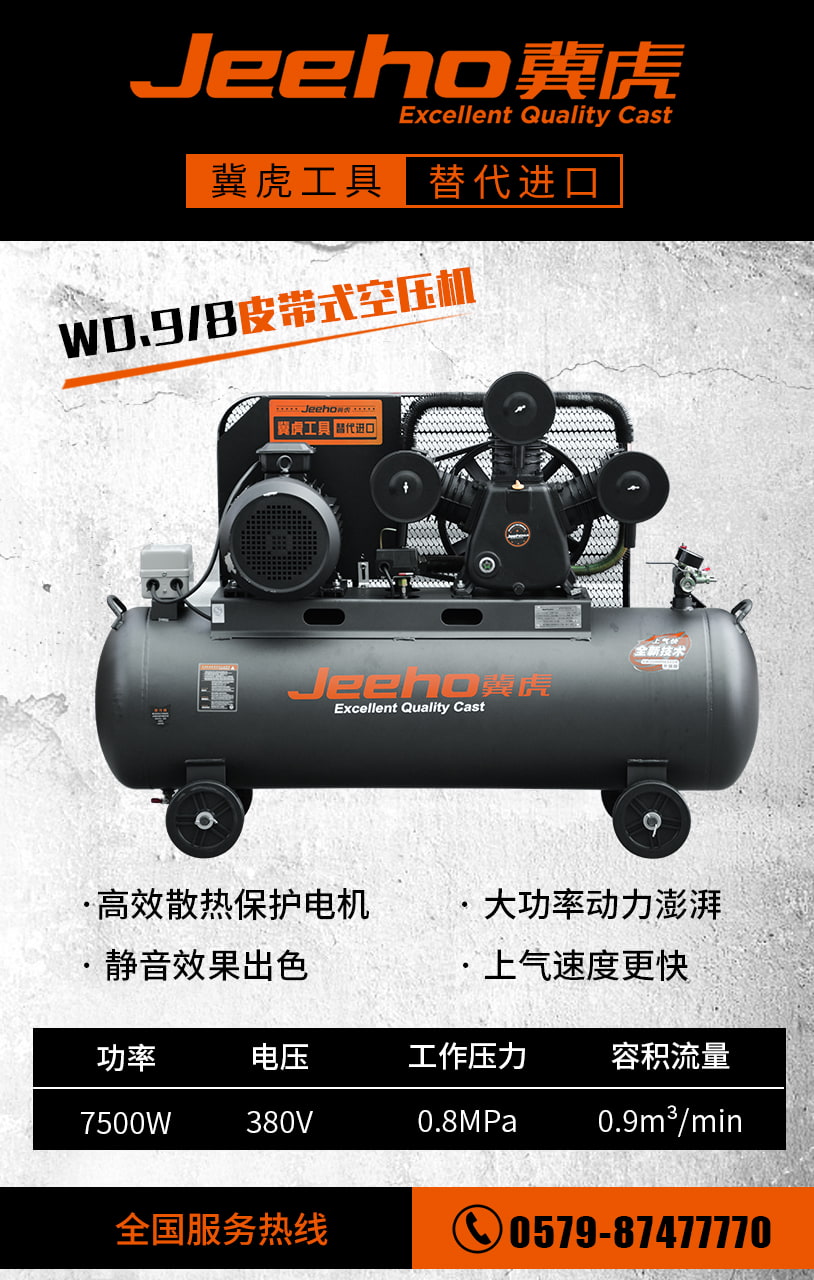 冀虎W-0.9/8 (三相,带木箱)皮带式空压机